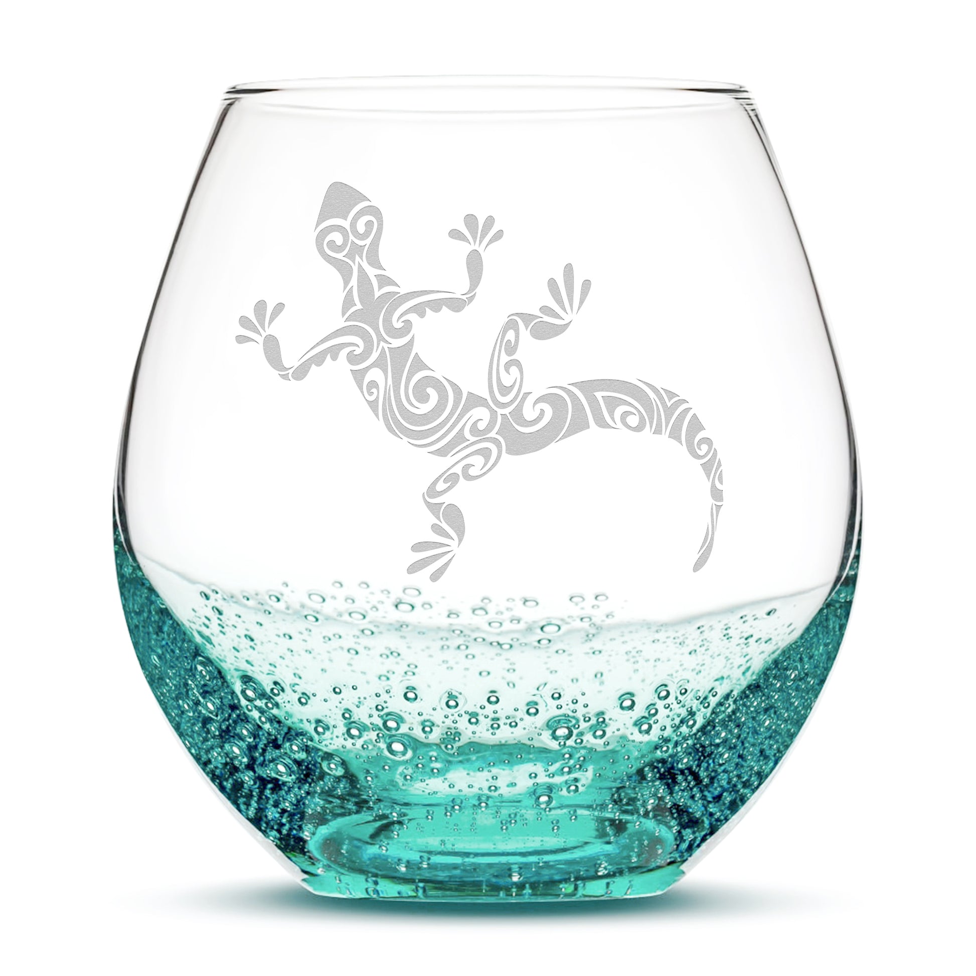 Bubble Wine Glass with Gecko Design, Laser Etched or Hand Etched