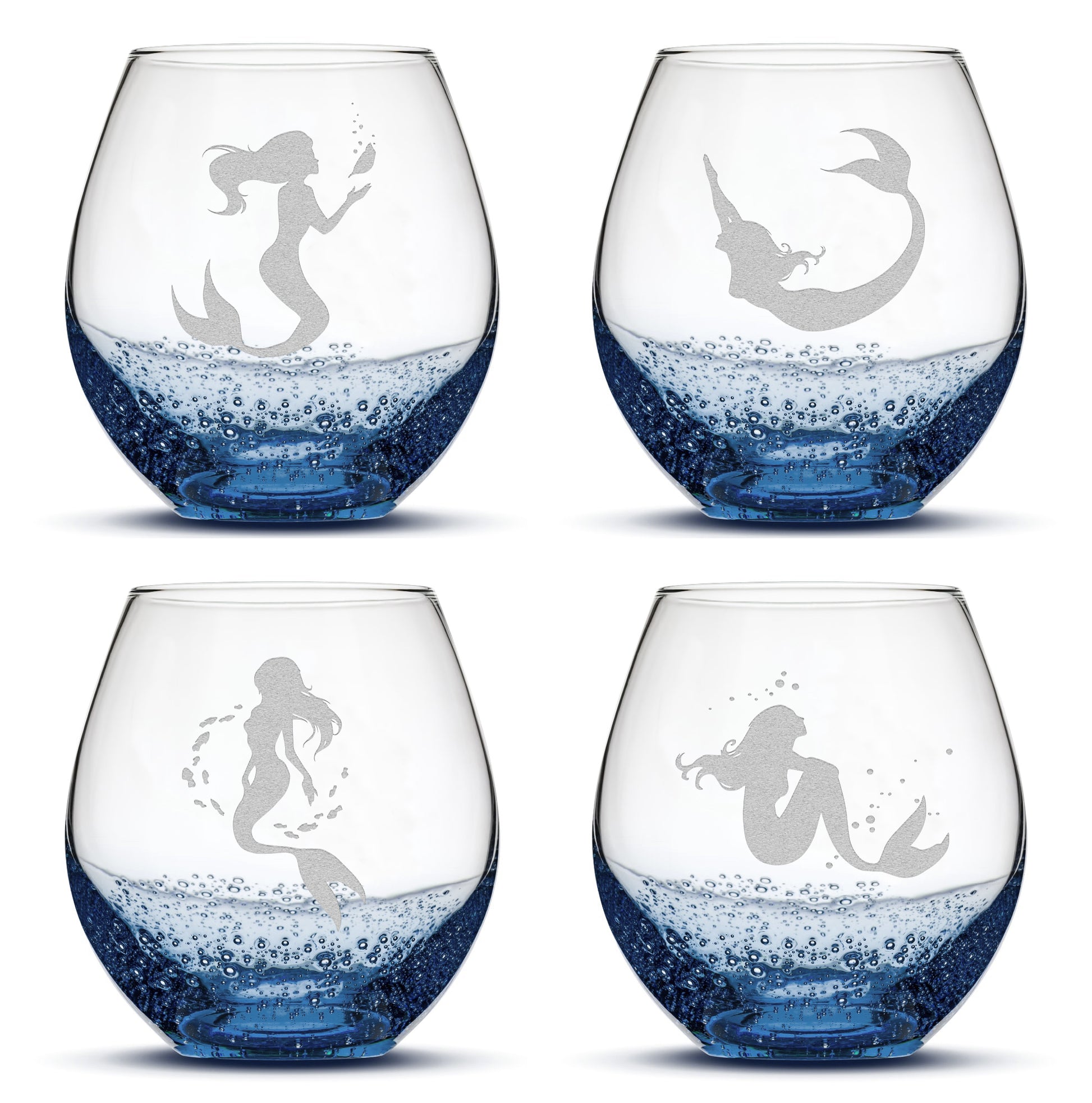Bubble Wine Glasses, Mermaid Designs, 18oz, Set of 4
