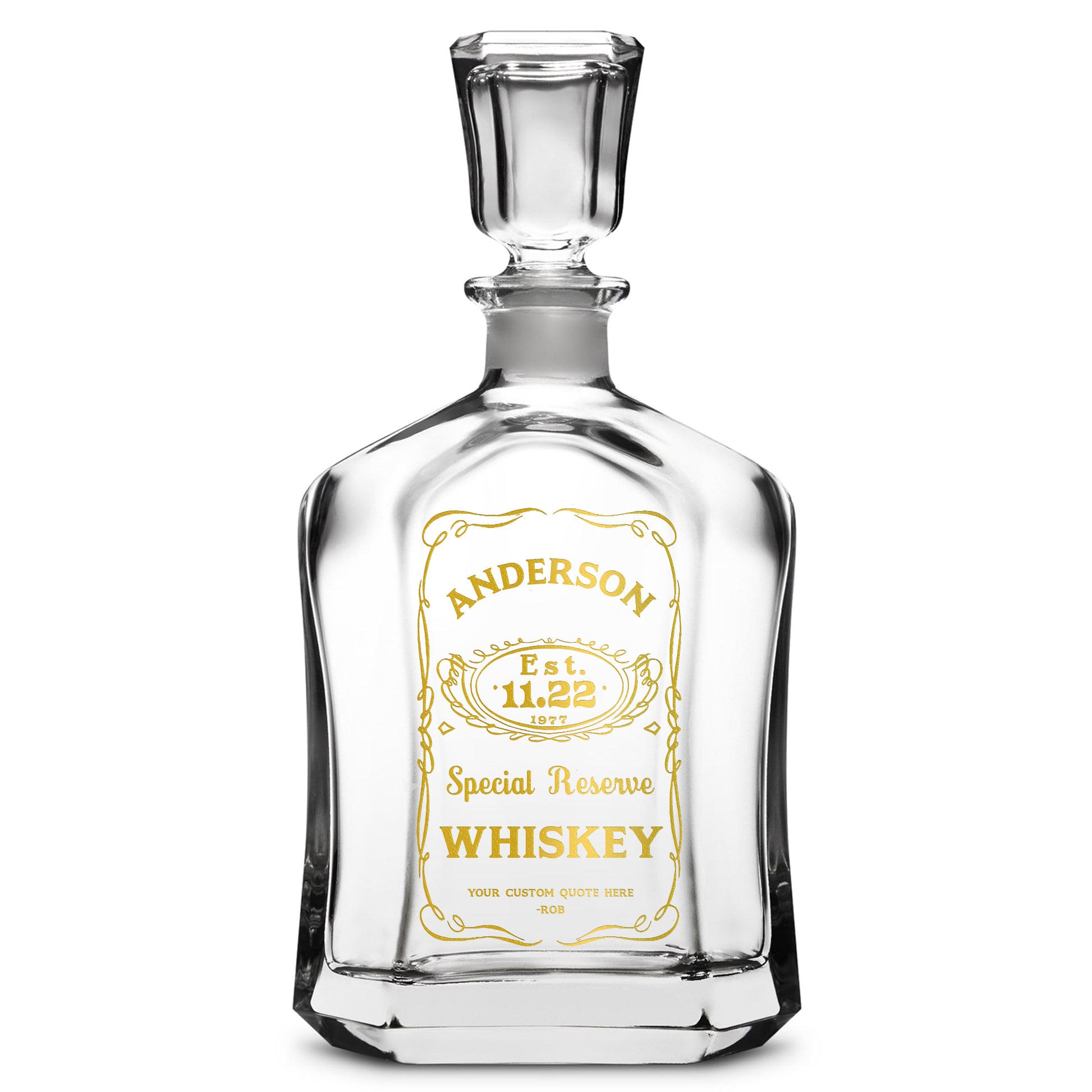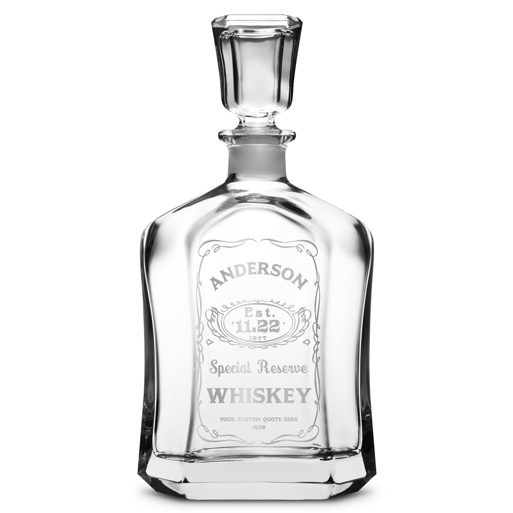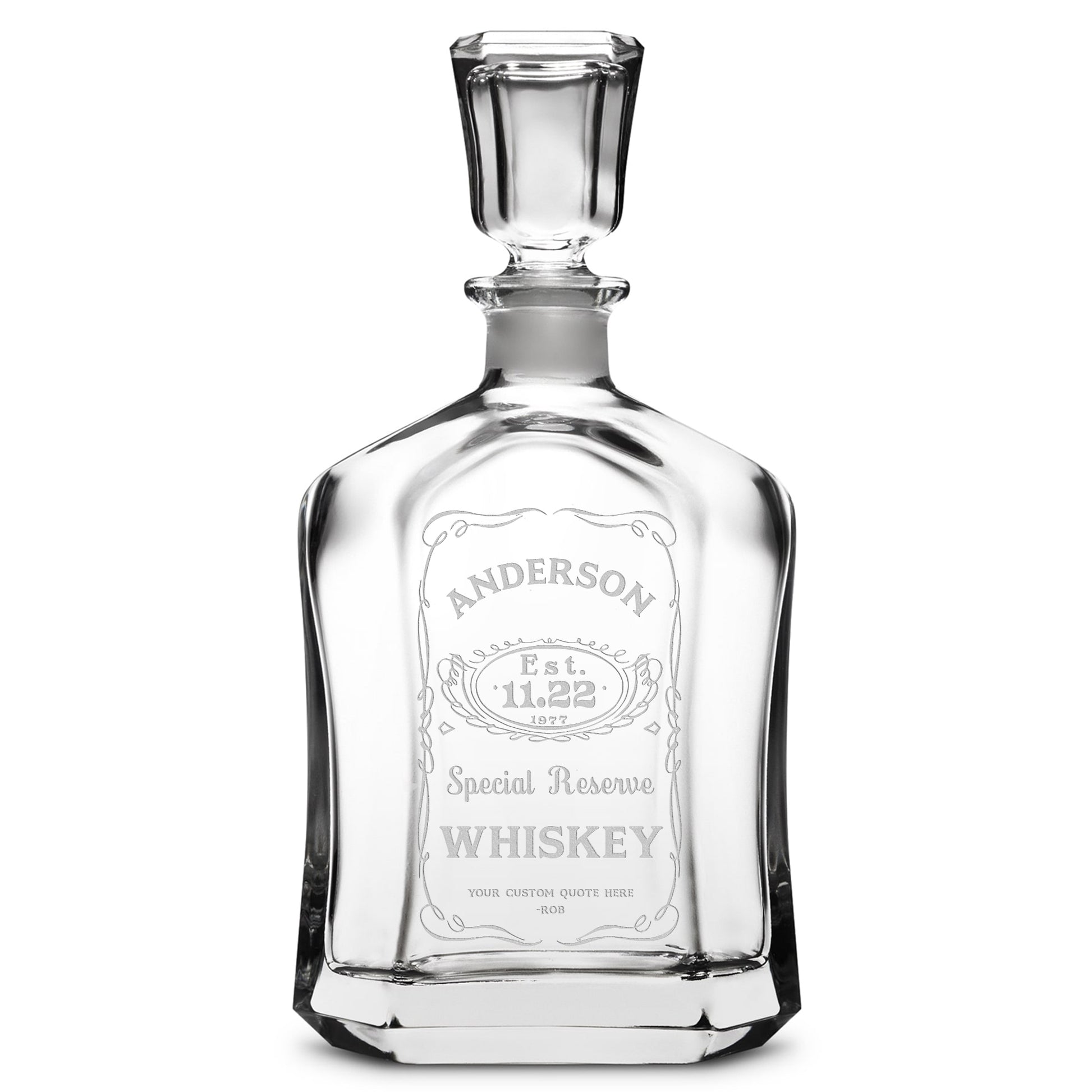 Customizable Jack Daniel's, Premium Refillable Capital Style Liquor Bottle, Handmade, Handblown, Hand Etched Gifts, Sand Carved, 750ml, Laser Etched or Hand Etched