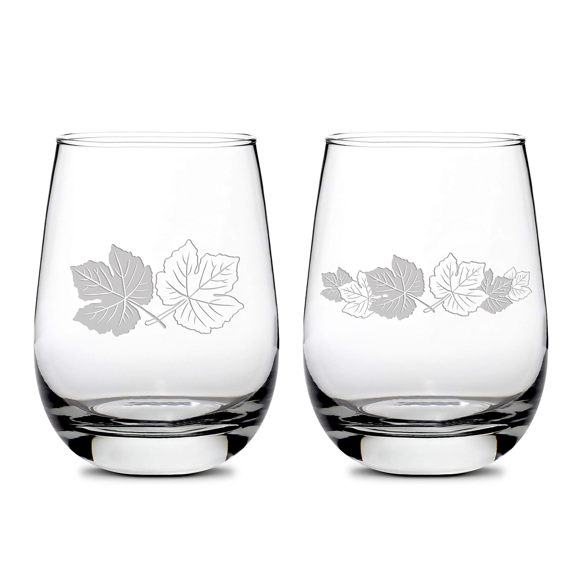 Premium Wine Glasses, Set of Grape Leaves, 16oz (Set of 2), Laser Etched or Hand Etched