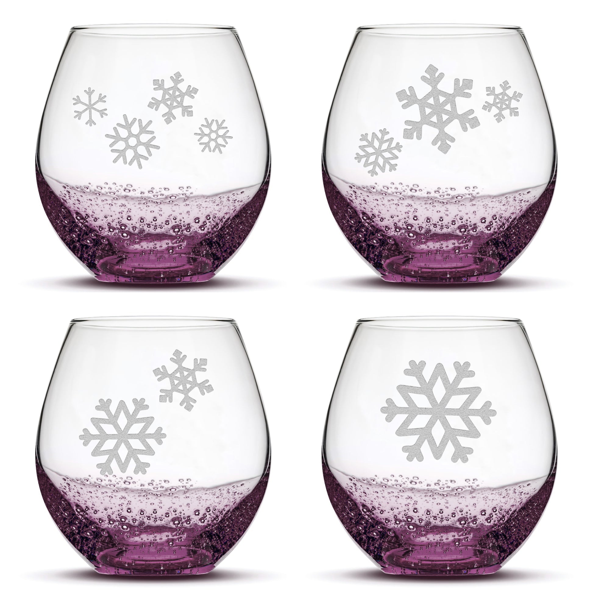 Bubble Wine Glasses with Snowflakes, Set of 4, Laser Etched or Hand Etched