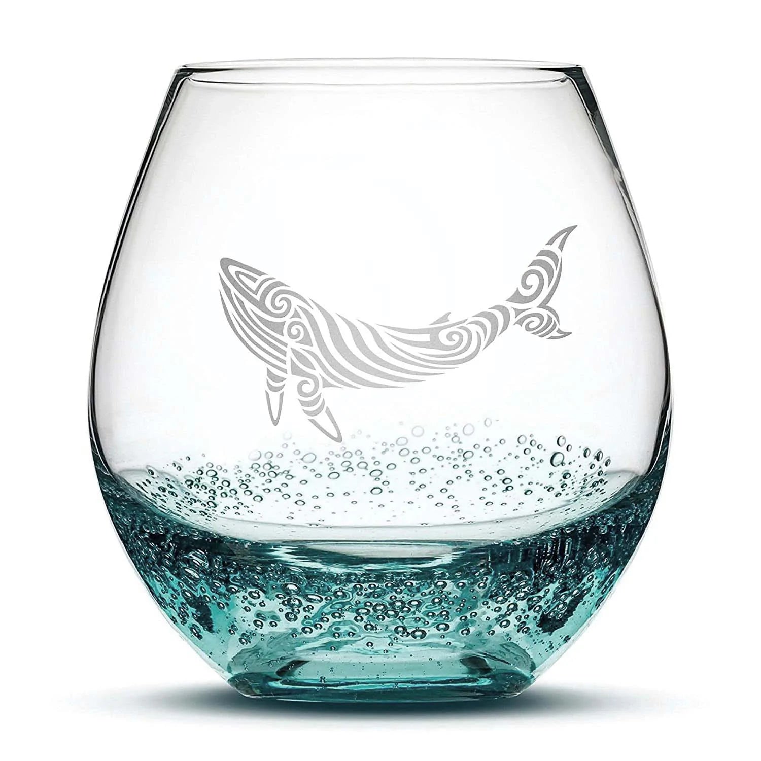 Less Than Perfect Bubble Wine Glass with Tribal Whale Design, Laser Etched or Hand Etched