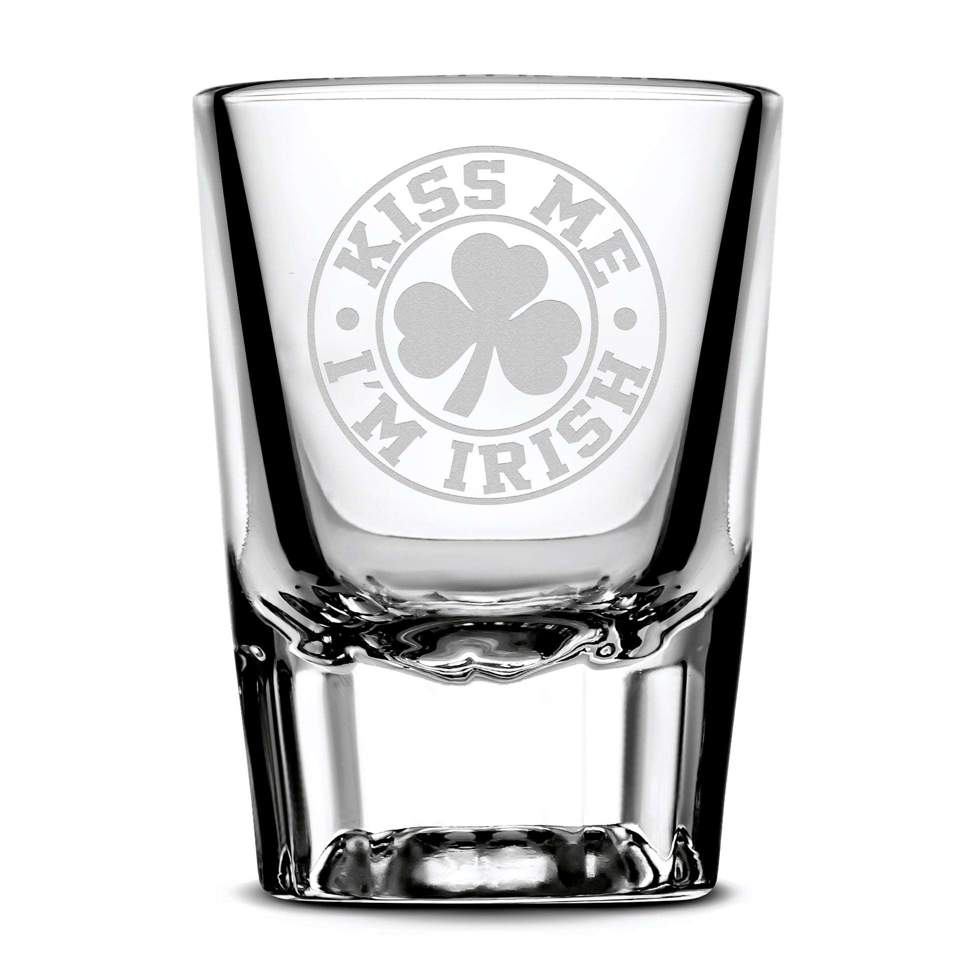 Premium Etched Shot Glass, Kiss Me I'm Irish, 2oz, Laser Etched or Hand Etched